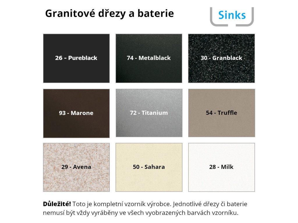 Dřez je vyroben z vysokokvalitního granitu, který je odolný proti poškrábání, UV záření i vysokým teplotám až 180 °C. Otočná orientace umožňuje flexibilní umístění vany vlevo nebo vpravo, což poskytuje ideální řešení pro každý typ kuchyně. Excentrické ovládání výpusti usnadňuje otevírání a zavírání odtoku otočením knoflíku na dřezu.