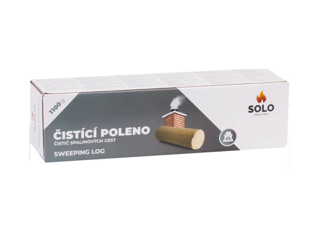 Čisticí poleno SOLO účinně odstraňuje saze a dehet z komína, zlepšuje tah, zvyšuje bezpečnost topení, prodlužuje životnost spotřebiče, snadné použití, balení 1 ks vhodné pro krby kamna kotle domácnosti všech