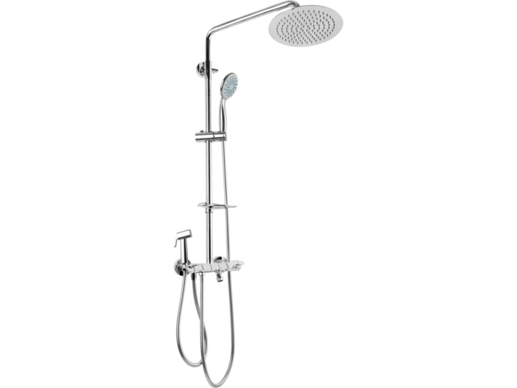 Chromovaná sprchová nastavitelná sestava vyrobena z nerezového materiálu, průměr trubky 25mm. KLÁVESOVÁ baterie rozteč 150mm s horním připojením. Hlavová nerezová sprcha průměr 20cm. Teleskopické nastavení výšky hlavové sprchy. Veškeré upínací prvky nerez, nebo mosaz. Veškeré závity 1/2". Včetně ruční sprchy, bidetové sprchy, sprchové hadice, mýdlenky a držáku sprchy. Jednoduché, intuitivní ovládání klávesami, které jsou označeny piktogramy. Zatlačením na klávesu vytéká voda z Vámi zvoleného výtoku. Vrácením klávesy vodu zastavíte. Progresivní kartuše k nastavení teploty a průtoku vody v jednom kroku. Baterie vyrobena z kvalitní mosazi.
