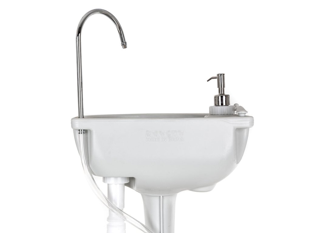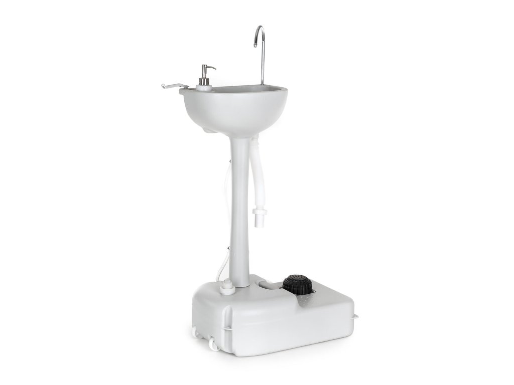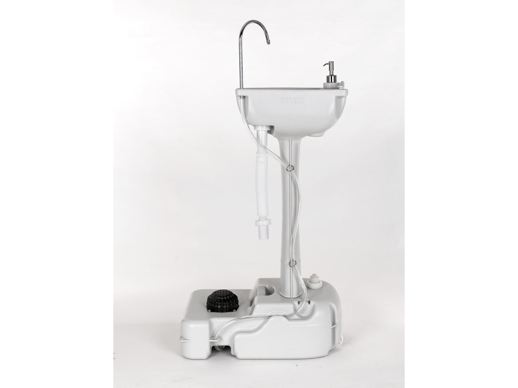Umyvadlo přenosné.Přenosné stojanové umyvadlo lze využít na chatě, v kempu, v karavanu či na farmářských trzích, stáncích s občerstvením, všude tam, kde jsou kladeny požadavky na hygienu a potřebu zajištění tekoucí vody i bez přístupu k vodovodní přípojce.
