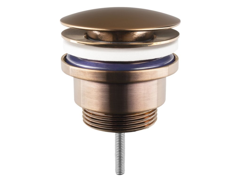 Umyvadlová výpust 5/4“, click-clack, velká zátka, 10-55mm, měď mat