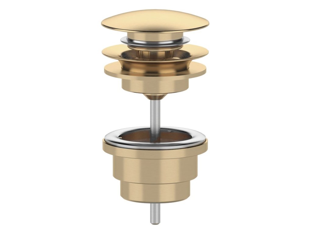 Umyvadlová výpust 5/4“, click-clack, velká zátka, 10-65mm, zlato mat