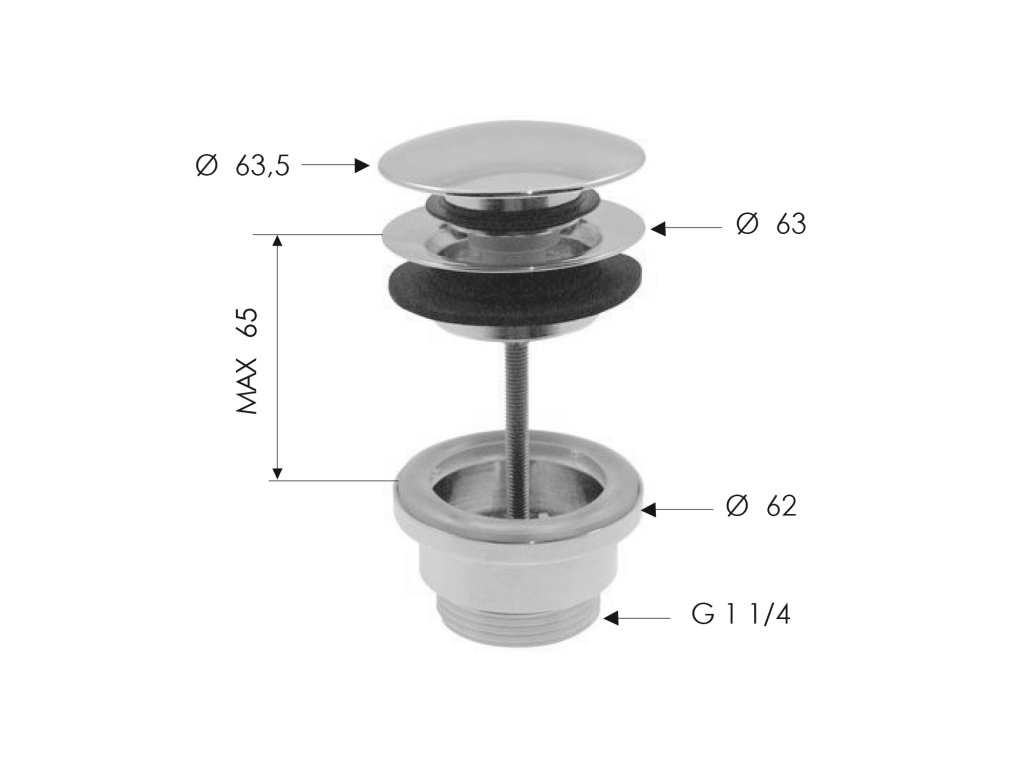 Uzávěr výpusti 5/4" pro umyvadlo s přepadem - zátka nerez