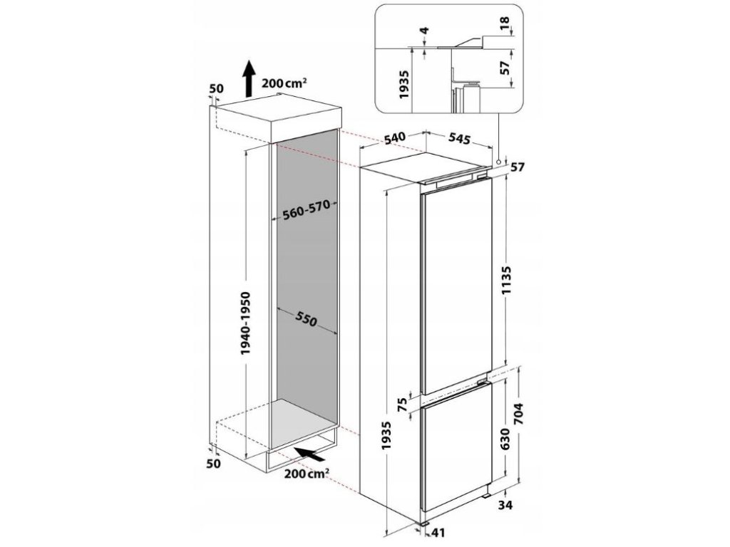 Díky svému vysokému designu (193,5 cm) poskytuje dostatek prostoru i pro větší rodiny, přičemž si zachovává úzký profil (54 cm) pro jednoduchou vestavbu do kuchyňské linky.
