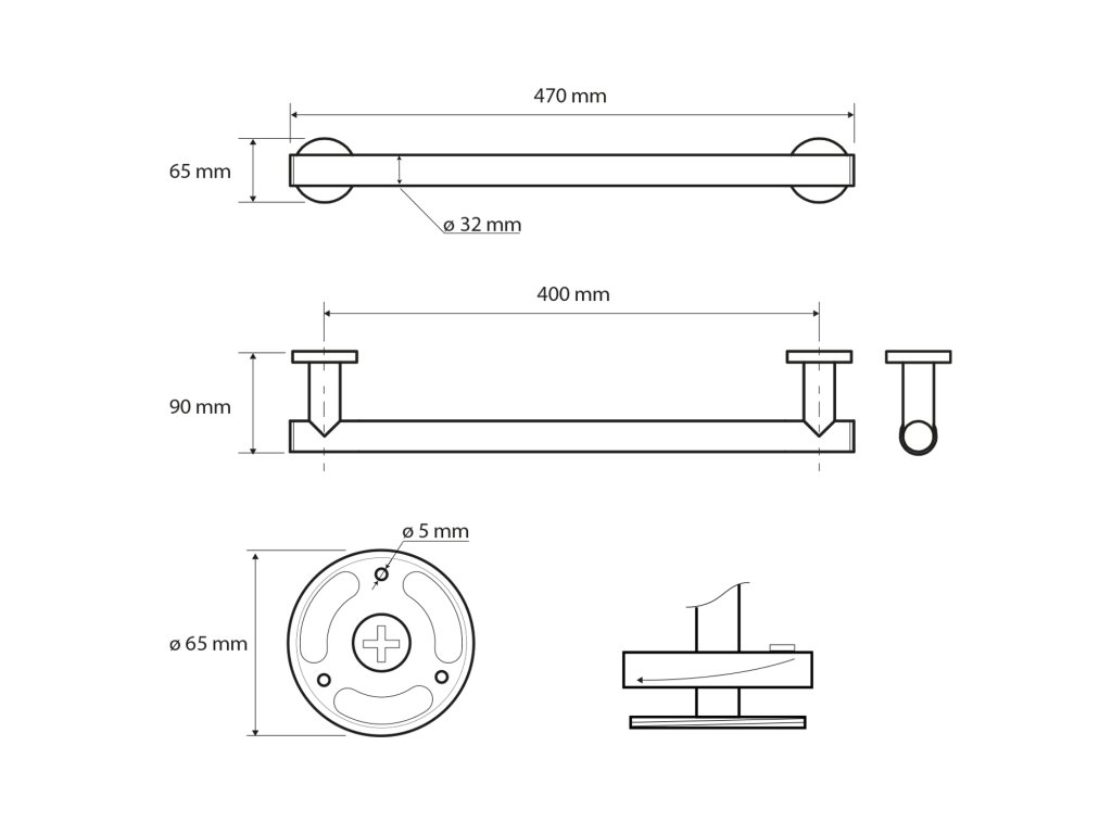 X-ROUND BLACK madlo 400mm, černá mat