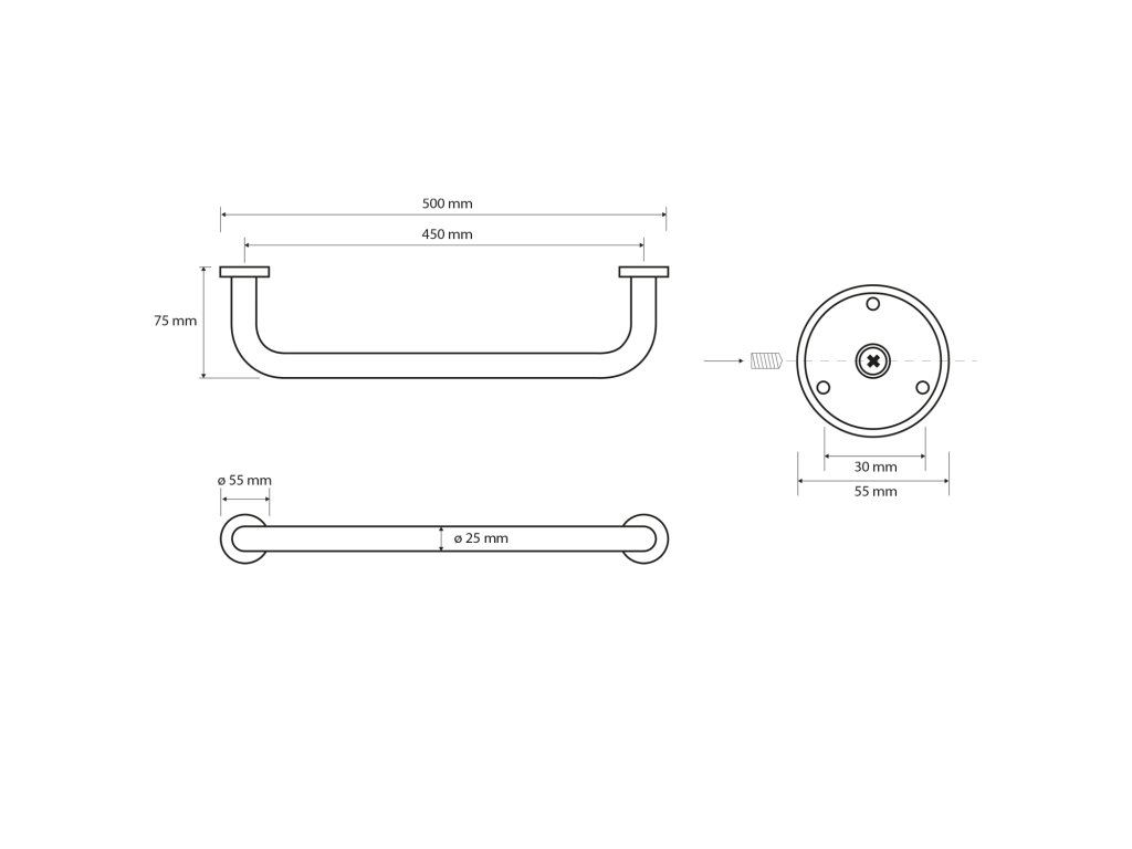 X-ROUND E madlo pevné 450mm, chrom