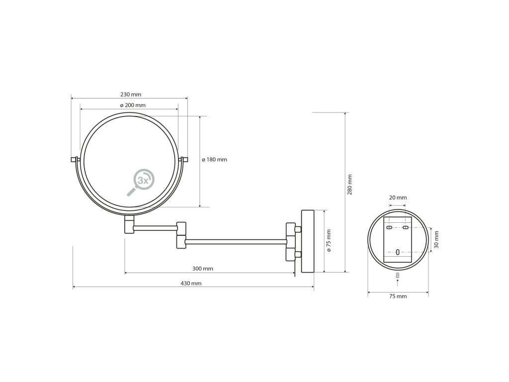 X-ROUND kosmetické zrcátko závěsné, Ø 200mm, oboustranné, chrom