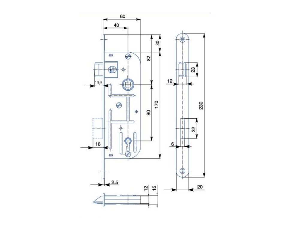 Zámek zadlabací 02-03 – 90/60 P-L je spolehlivý jednozápadový zámek určený pro interiérové dveře. Díky standardní rozteči 90 mm a hloubce zádlabu 60 mm je ideální pro běžné dveře v domácnostech, kancelářích nebo provozovnách. Tento model je vyroben z kvalitní oceli s povrchovou úpravou bílý zinek (BZN), což zajišťuje odolnost proti korozi a dlouhou životnost. Zámek je určen pro dozický klíč (BB) a je vybaven pravo-levým provedením (P-L), což znamená, že lze snadno přizpůsobit směru otevírání dveří otočením střelky.