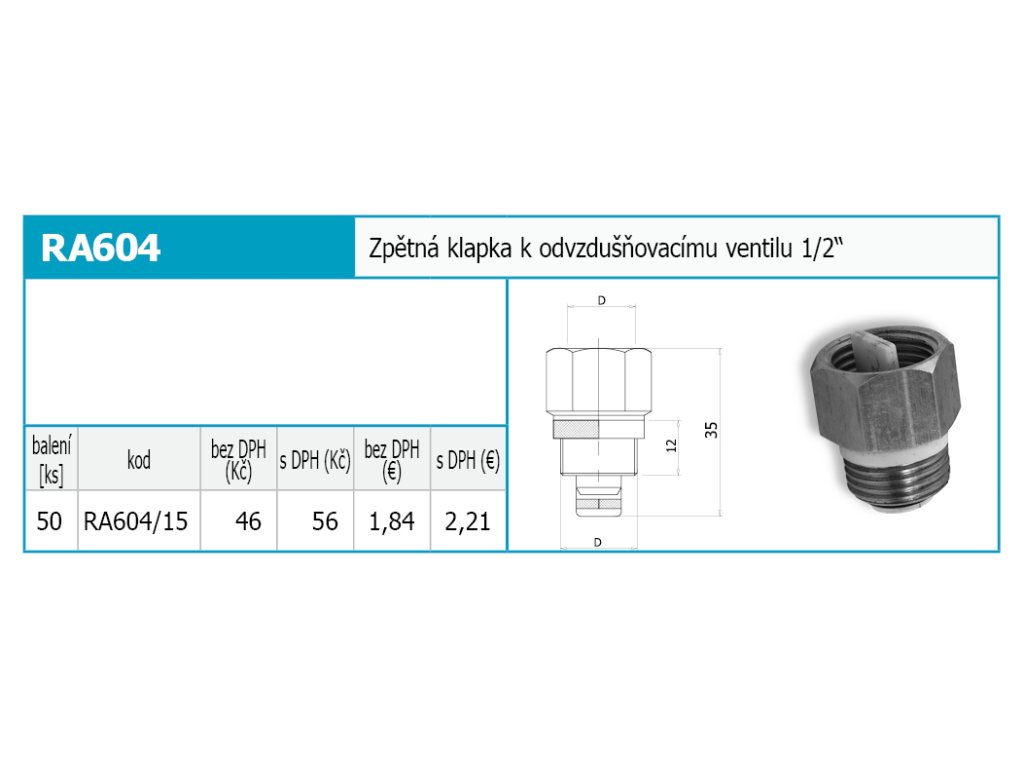 Zpětná klapka k odvzdušňovacímu ventilu 1/2"Doplňkové parametry